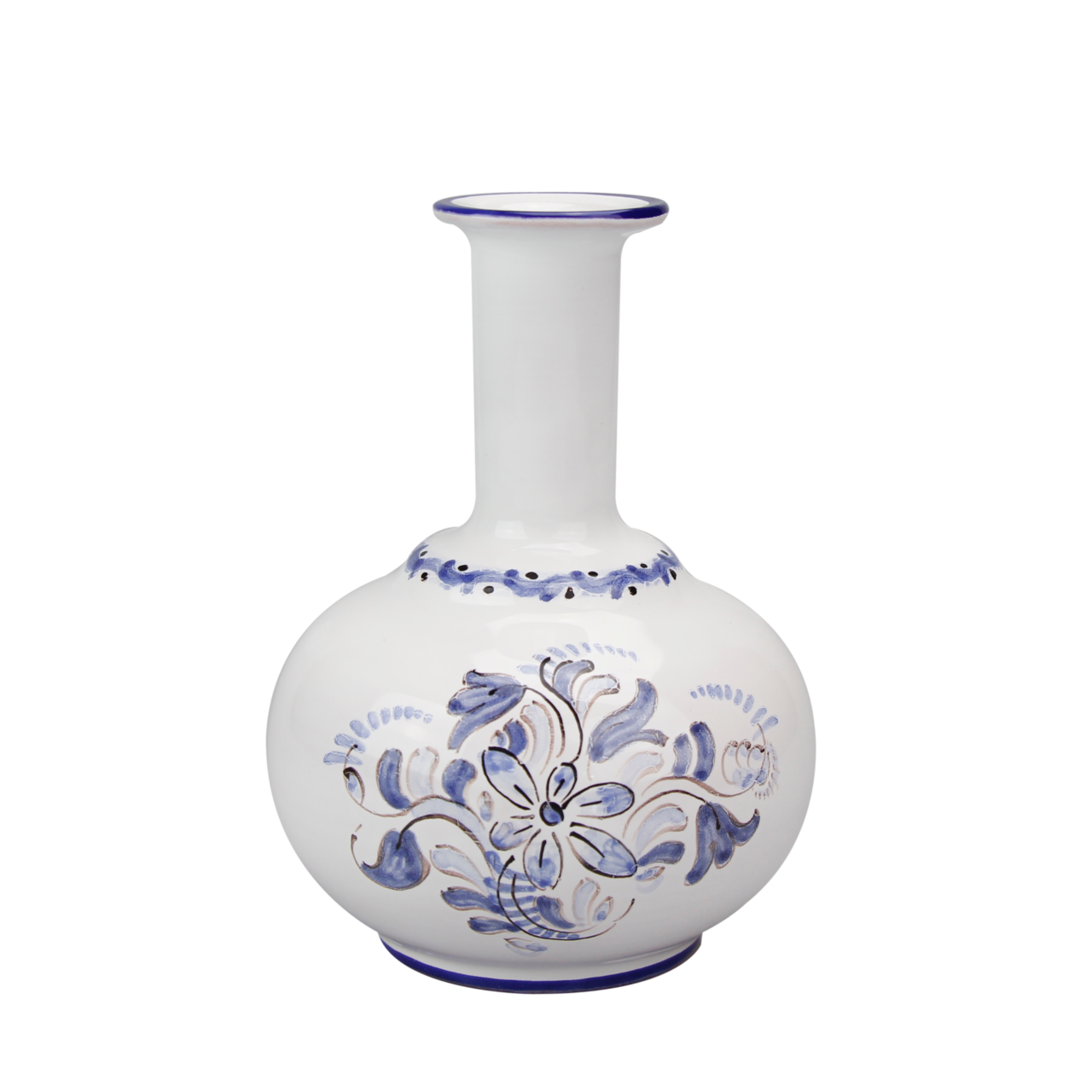 Décor à la main sur émail cru, bouquet floral en camaïeu de bleu.